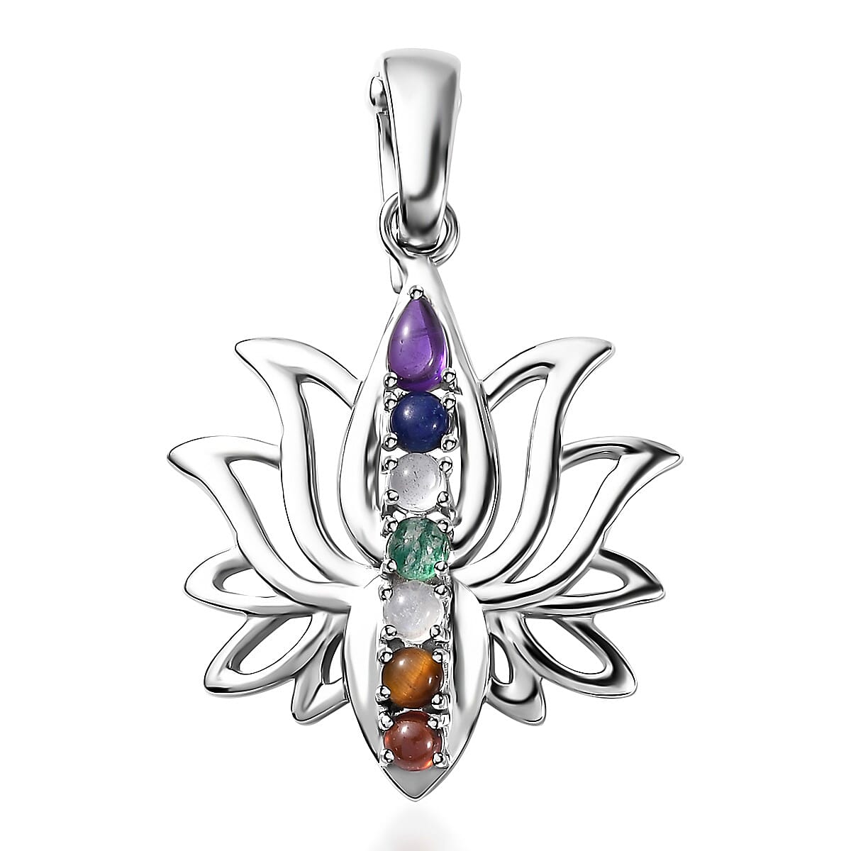African Amethyst , Multi gemstones Fancy Pendant in Rhodium Over Sterling Silver 3.68 ctw