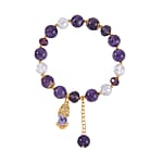 African Amethyst, Purple and White Glass, Simulated Black and White Diamond Bracelet with Charm in Goldtone 75.20 ctw