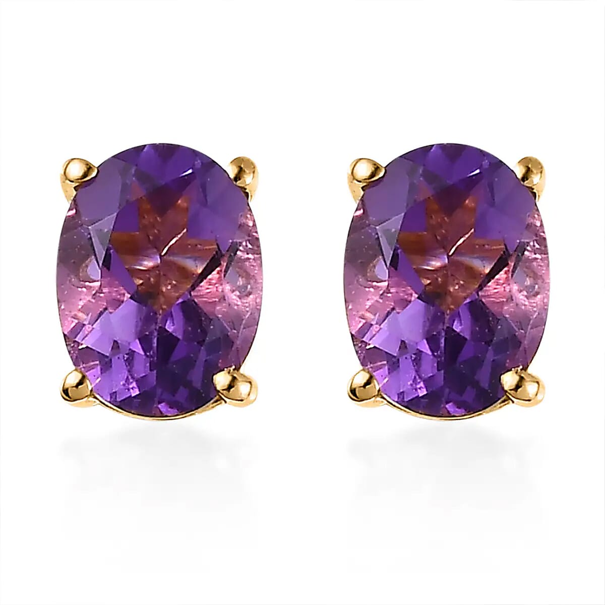 African Amethyst Solitaire Stud Earrings in Vermeil Yellow Gold Over Sterling Silver, Amethyst Jewelry, Birthstone Earrings, Gift For Her 2.15 ctw