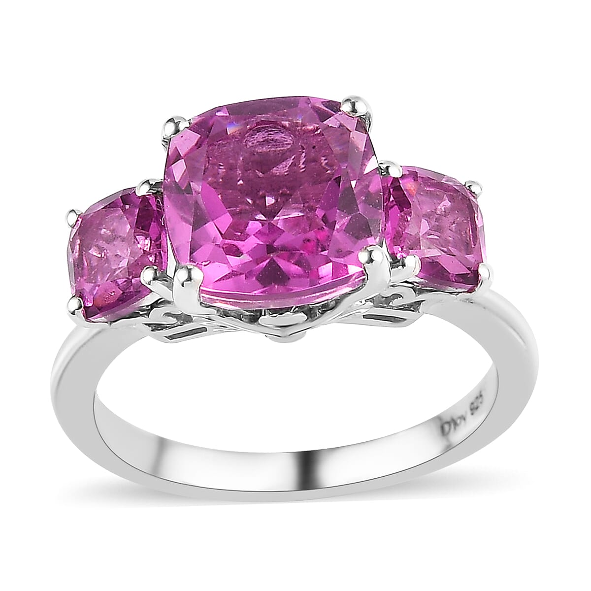 African Lilac Quartz (Triplet) 3 Stone Ring in Platinum Over Sterling Silver (Size 5.0) 4.25 ctw