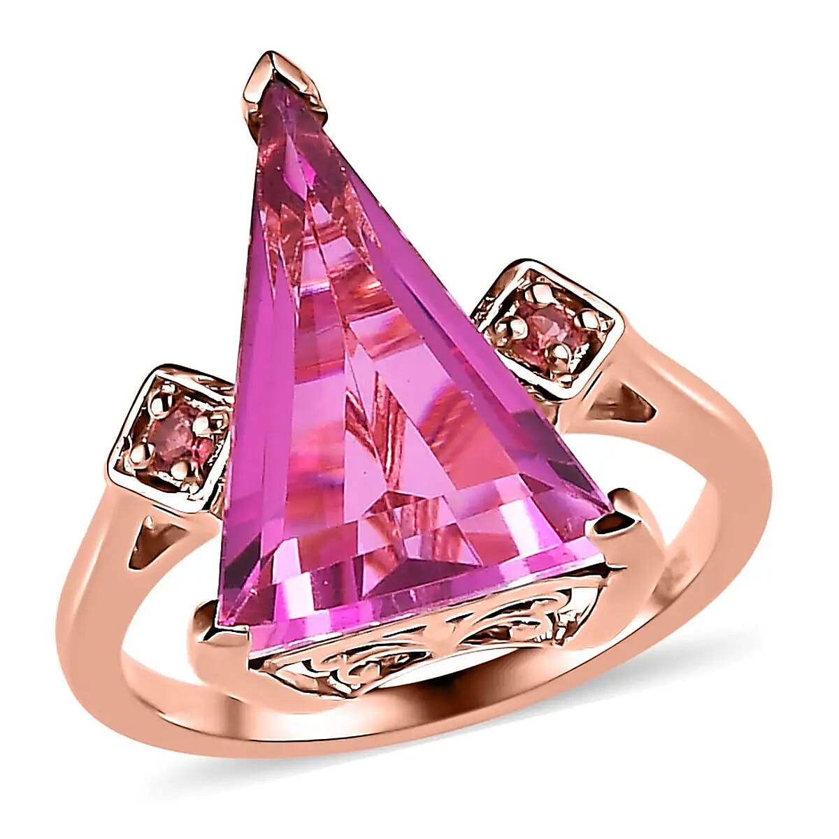 African Lilac Quartz Triplet Ring, Three Stone Ring, Morro Redondo Pink Tourmaline Ring, Sterling Silver Ring 5.85 ctw (Size 5.00)