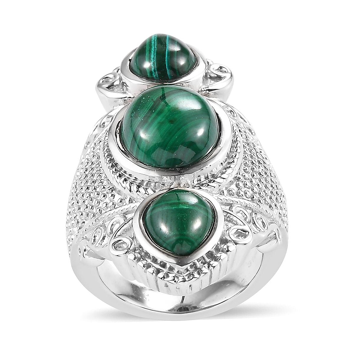 African Malachite 12.30 ctw 3 Stone Ring in Stainless Steel (Size 8.0)