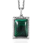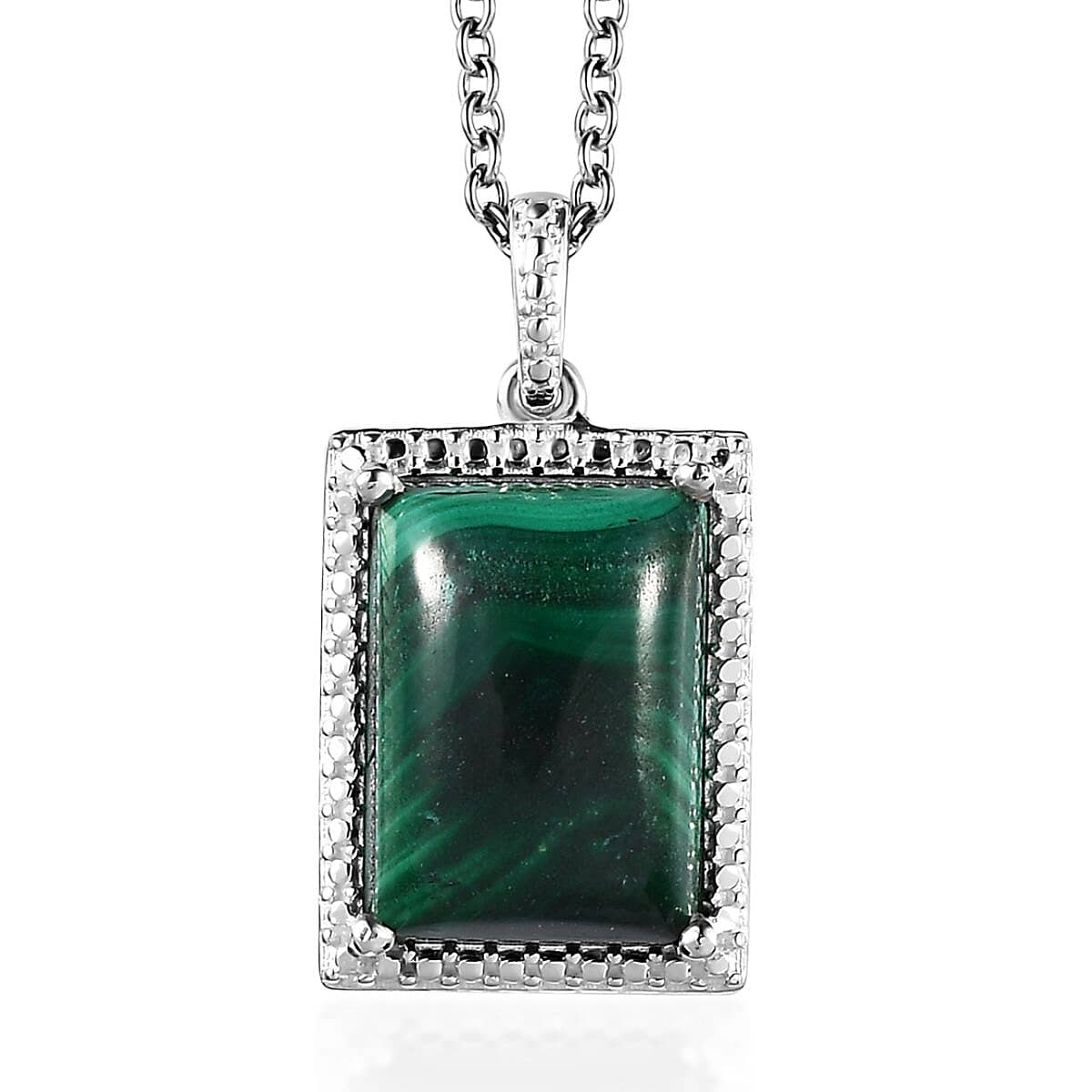 African Malachite 8.00 ctw Solitaire Pendant in Sterling Silver with Stainless Steel Necklace 20 Inches