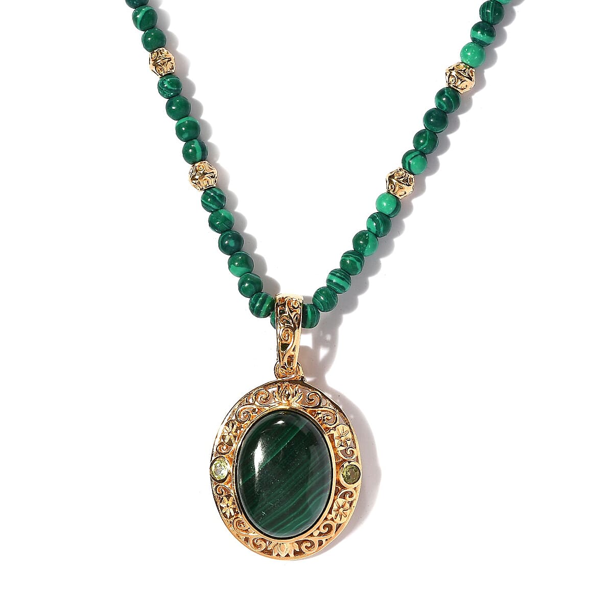 African Malachite and Peridot Beaded Necklace 18-20 Inches in 14K Yellow Gold Over Copper with Magnet 40.80 ctw