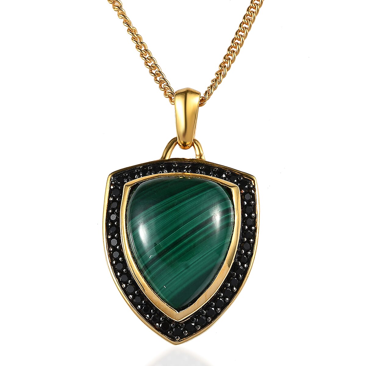 African Malachite and Thai Black Spinel Men's Pendant Necklace 24 Inches in 14K Yellow Gold Over Sterling Silver 15.00 ctw