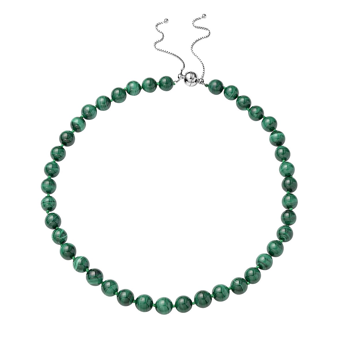 African Malachite Beaded Necklace 18-22 Inches with Magnetic Clasp in Rhodium Over Sterling Silver 419.00 ctw