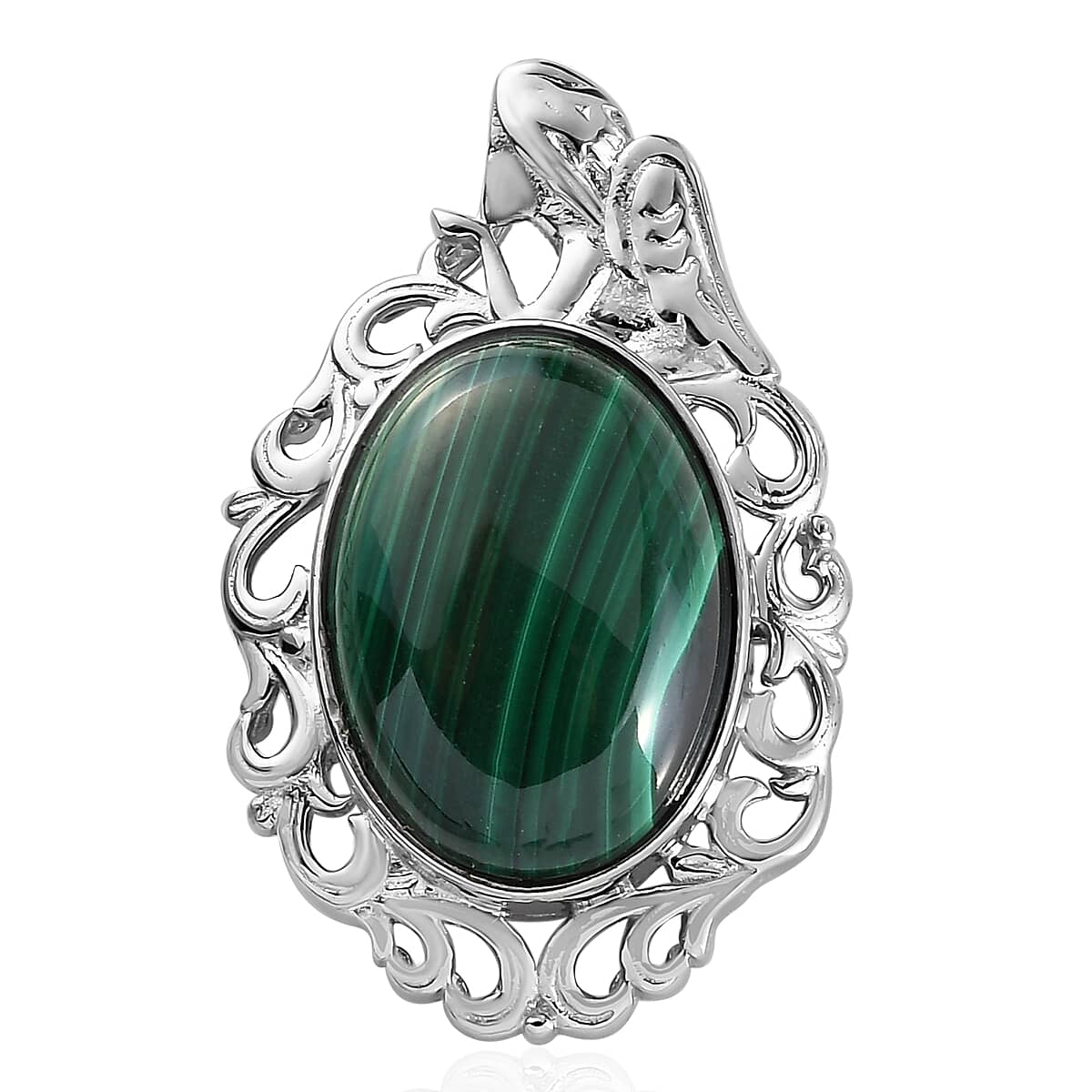 African Malachite Solitaire Pendant in Platinum Over Copper with Magnet 14.50 ctw