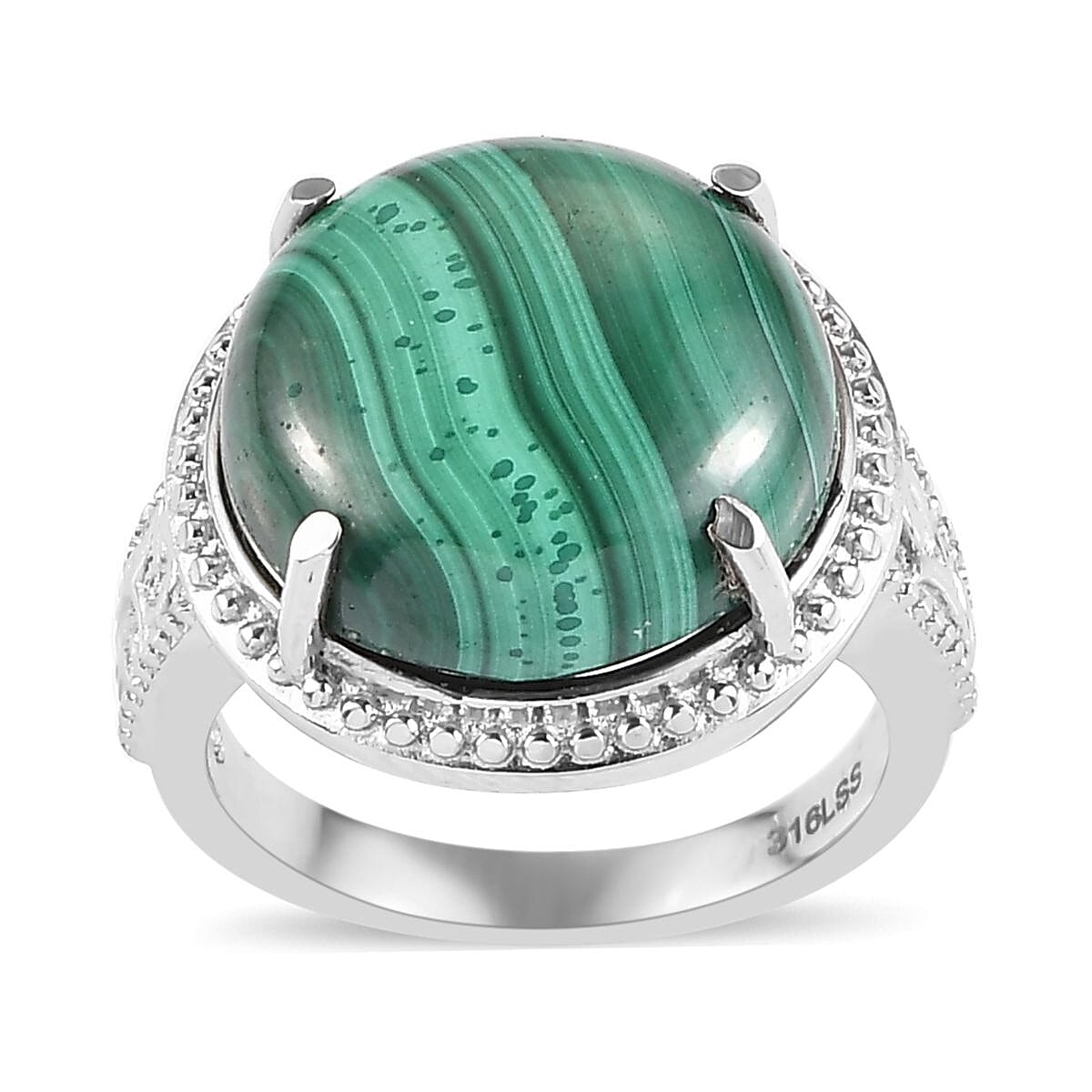 African Malachite Solitaire Ring in Stainless Steel (Size 10.0) 15.00 ctw