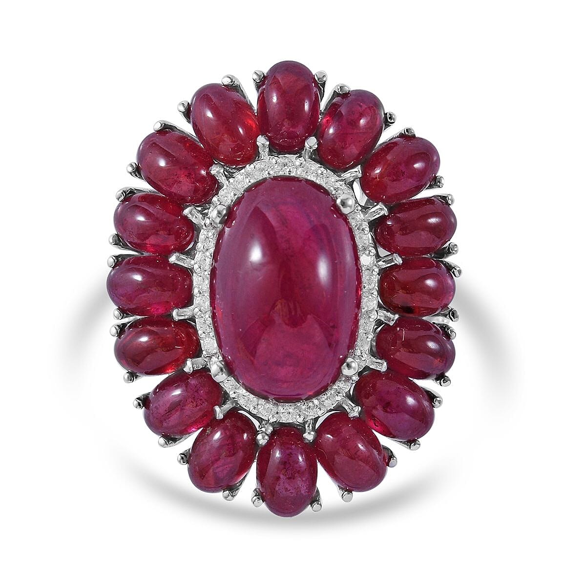 African Ruby and White Zircon Halo Ring in Platinum Over Sterling Silver 23.40 ctw