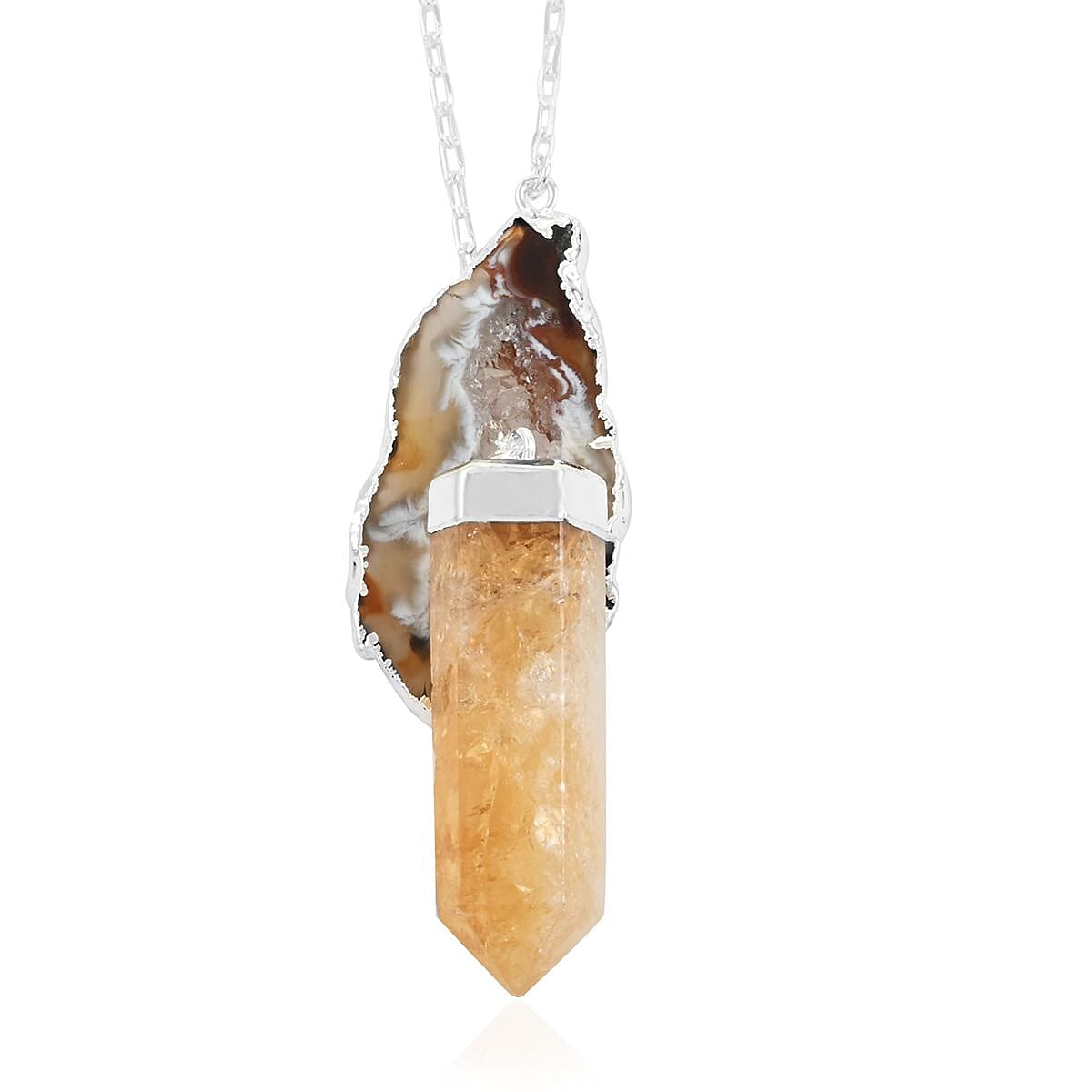 Agate Occo and Terminated Light Citrine Pendant Necklace 18 Inches in Silvertone 91.40 ctw