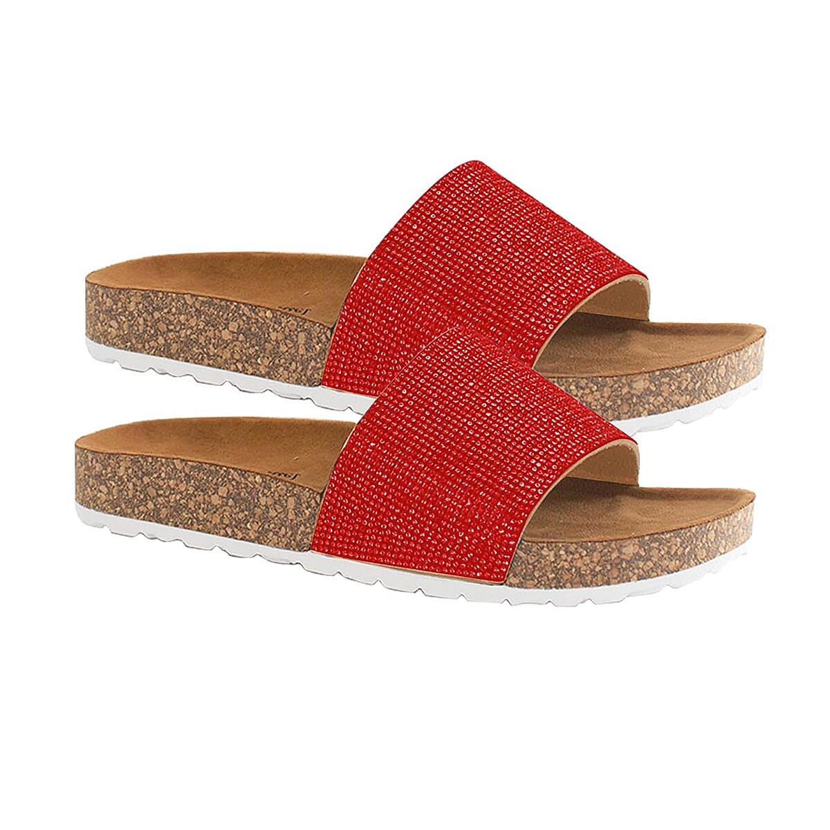 Alexis Bendel Red Kylie Rhinestone Slide Sandal with Cork Sole - Size 7.5