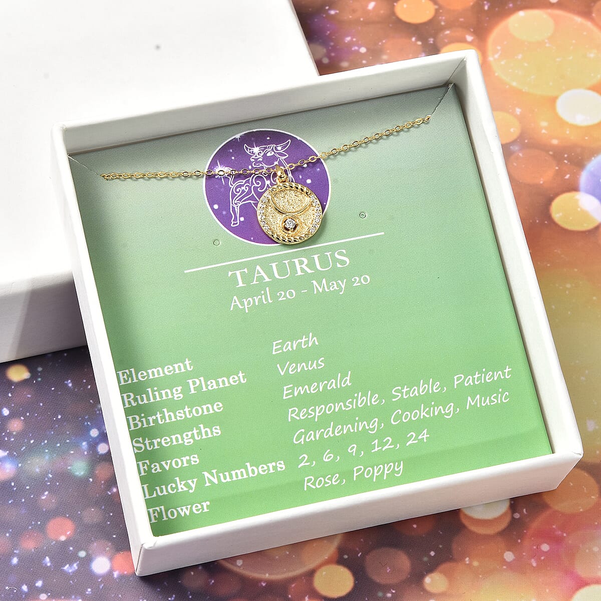 All About Taurus Zodiac Gift Box with Simulated Diamond Taurus Symbol Necklace 17 Inches in 14K Yellow Gold Over Sterling Silver 0.30 ctw