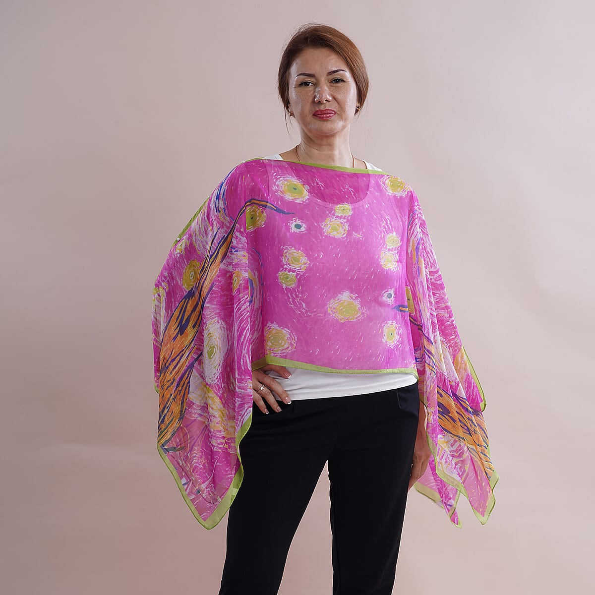 All in One Pink Floral Brush Stroke Chiffon Tunic (One Size Fits Most)