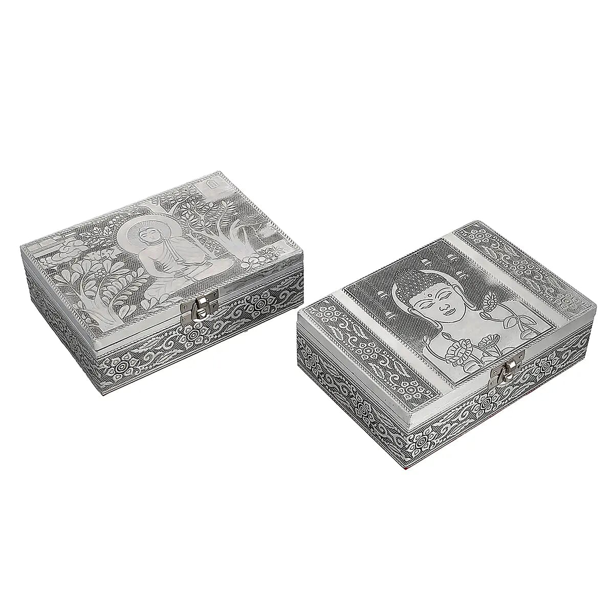 This embossed aluminum oxidized nesting storage box set is perfect for those seeking stylish and secure storage solutions. Whether used to organize small personal items or as a decorative accent in your living space, these storage cases offer elegance and practicality in one beautiful package.