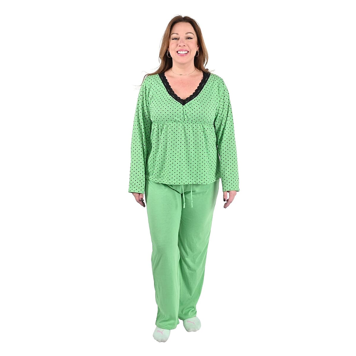Amanda Paige Green Polka Knit Pajama Set - 2X