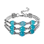 Amazonite 68.50 ctw 3 Row Station Bracelet in Silvertone (7-9In)