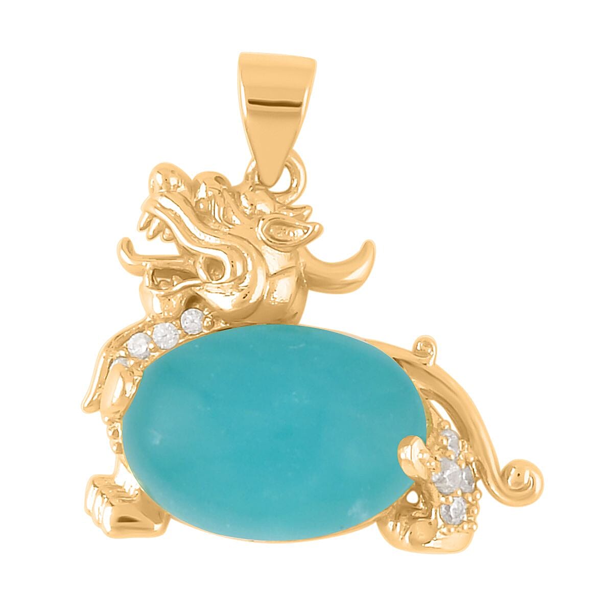 Amazonite and Simulated Diamond Pixiu Pendant in Goldtone 6.10 ctw