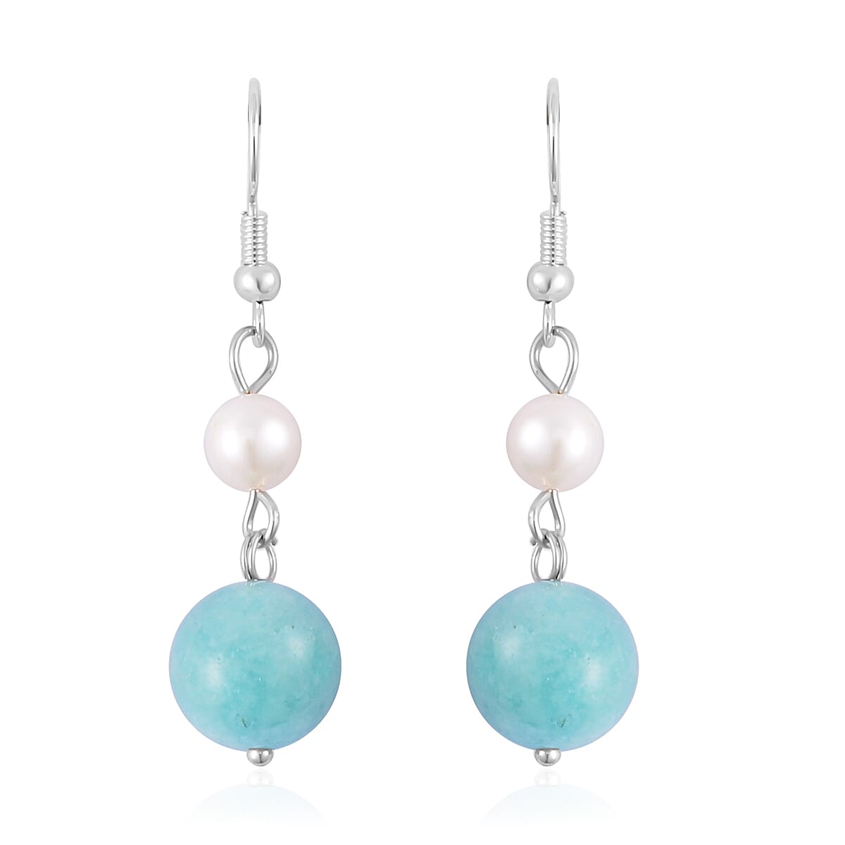 Amazonite and White Freshwater Pearl Drop Earrings in Silvertone 25.00 ctw