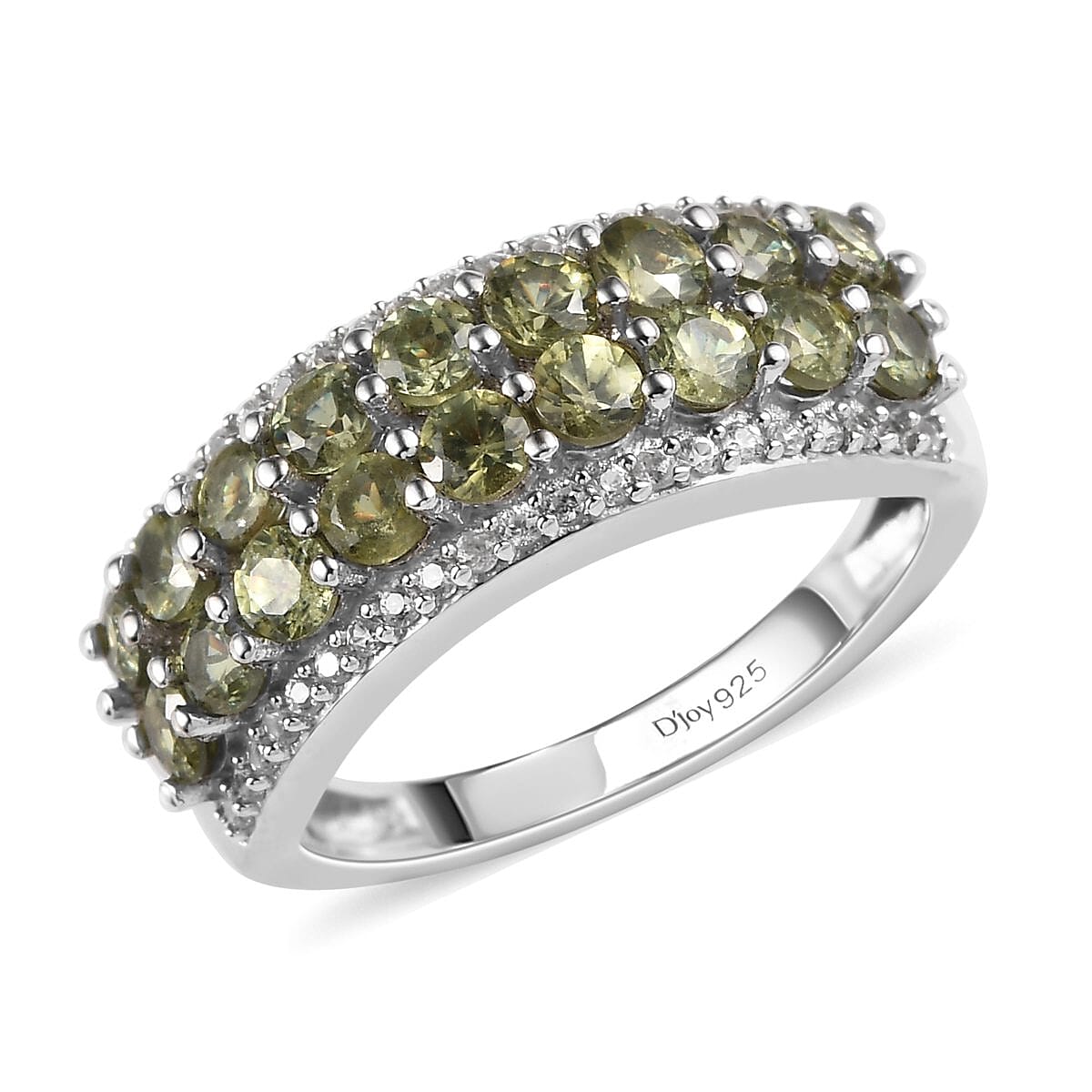 Ambanja Demantoid Garnet and Natural White Zircon Ring in Platinum Over Sterling Silver (Size 6.0) 2.00 ctw