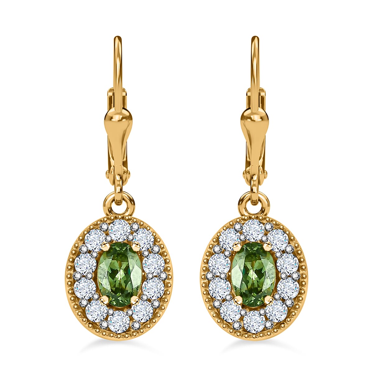 Ambanja Demantoid Garnet and White Zircon Lever Back Earrings in Vermeil Yellow Gold Over Sterling Silver 2.15 ctw