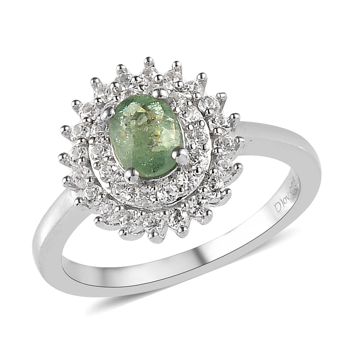 Ambanja Demantoid Garnet and White Zircon Sunburst Ring in Platinum Over Sterling Silver (Size 8.0) 1.00 ctw