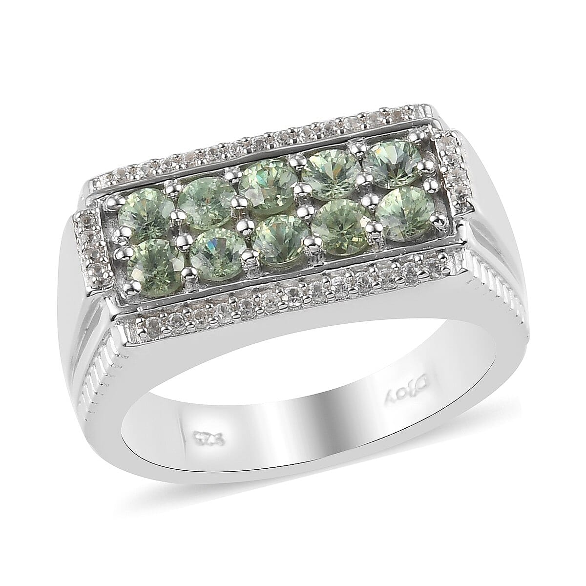 Ambanja Demantoid Garnet and Zircon Men's Ring in Platinum Over Sterling Silver (Size 10.0) 9.10 Grams 1.80 ctw