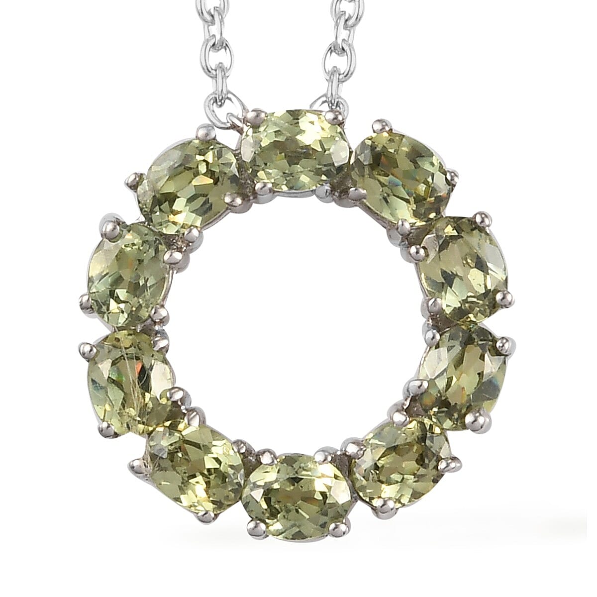 Ambanja Demantoid Garnet Circle Pendant Necklace 20 Inches in Platinum Over Sterling Silver 2.15 ctw