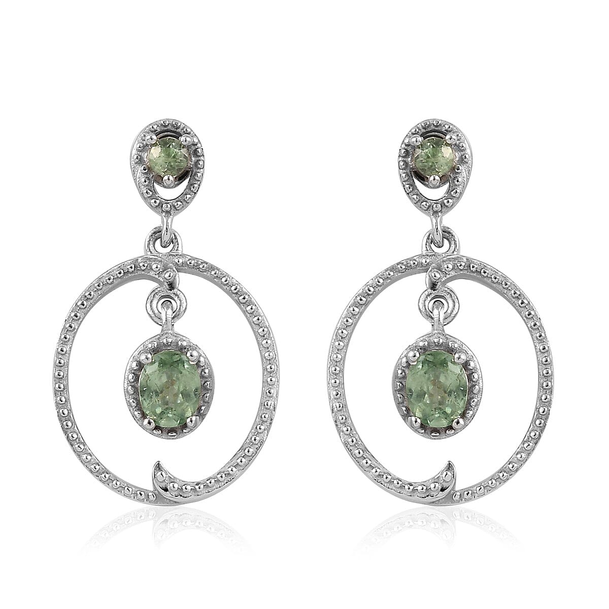 Ambanja Demantoid Garnet Dangling Earrings in Platinum Over Sterling Silver 1.10 ctw