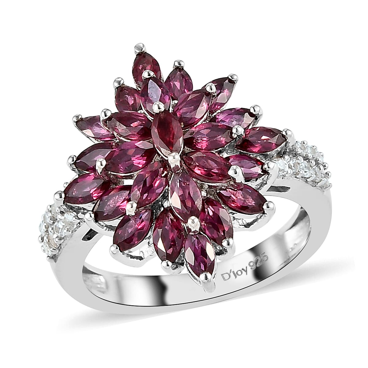 AMERICAN Arizona Anthill Garnet and Natural White Zircon Floral Ring in Platinum Over Sterling Silver (Size 9.0) 2.60 ctw