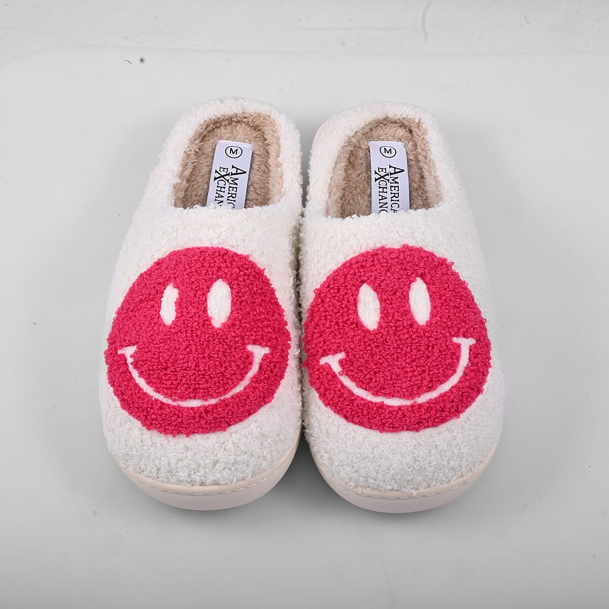 American Exchange Women's Fuchsia Smiley Face Memory Foam Slippers - Large