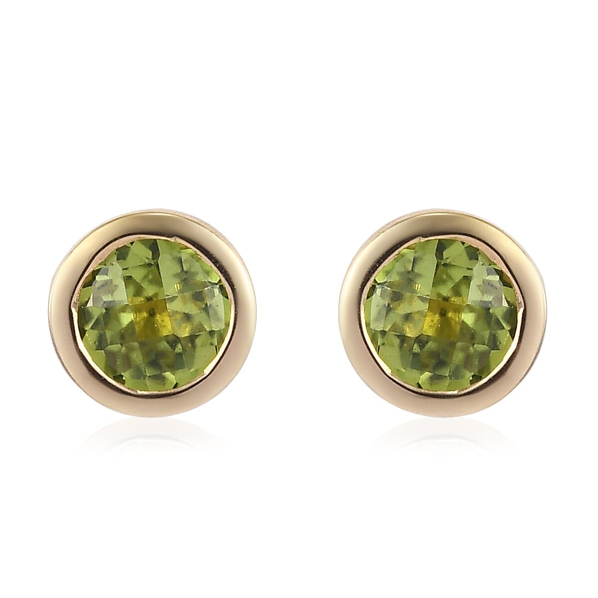 AMERICAN Natural Arizona Peridot Solitaire Stud Earrings in Vermeil Yellow Gold Over Sterling Silver 1.20 ctw