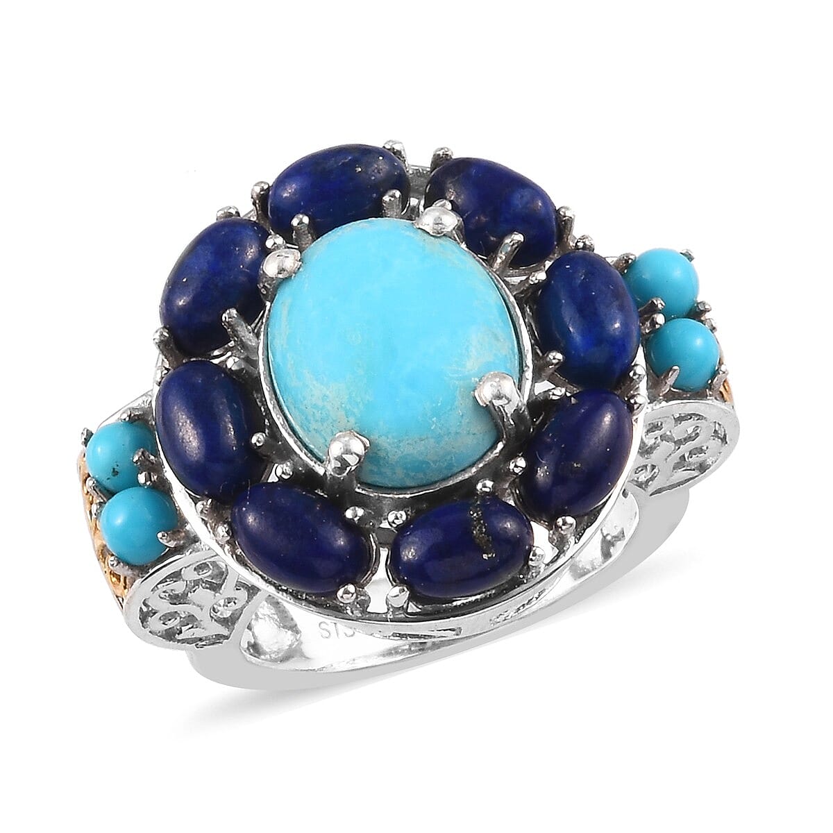 Sleeping Beauty Turquoise and Lapis Lazuli Ring in 14K Yellow Gold and Platinum Over Sterling Silver (Size 7.0) 6.30 ctw
