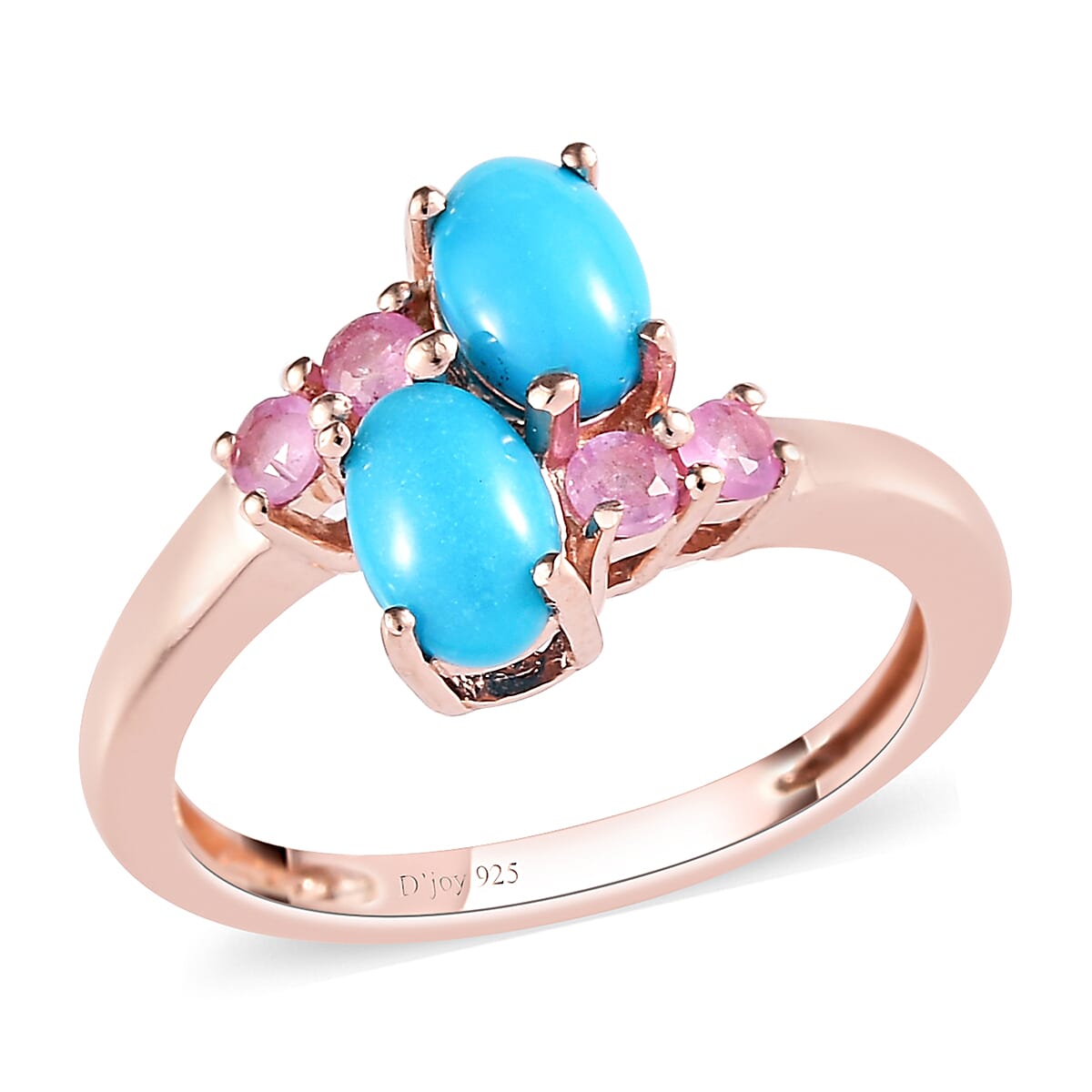 AMERICAN Natural Sleeping Beauty Turquoise and Madagascar Pink Sapphire Bypass Ring in Vermeil Rose Gold Over Sterling Silver 1.15 ctw