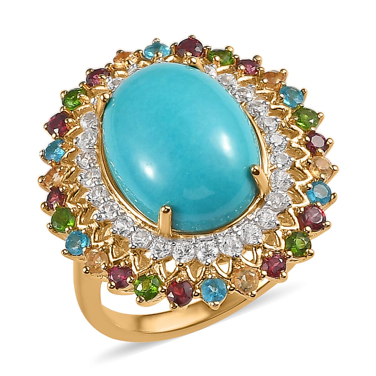 American Natural Sleeping Beauty Turquoise and Multi Gemstone Cocktail Ring in Vermeil Yellow Gold Over Sterling Silver 9.50 ctw