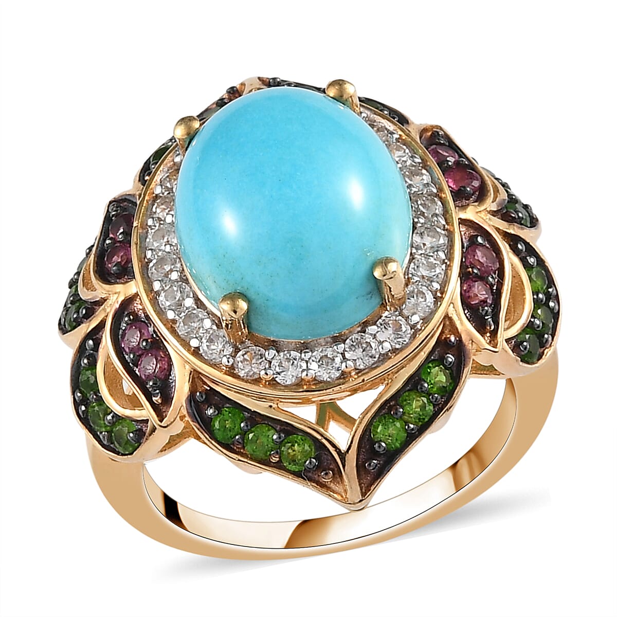 American Natural Sleeping Beauty Turquoise and Multi Gemstone Ring in Vermeil Yellow Gold Over Sterling Silver (Size 8.0) 4.90 ctw