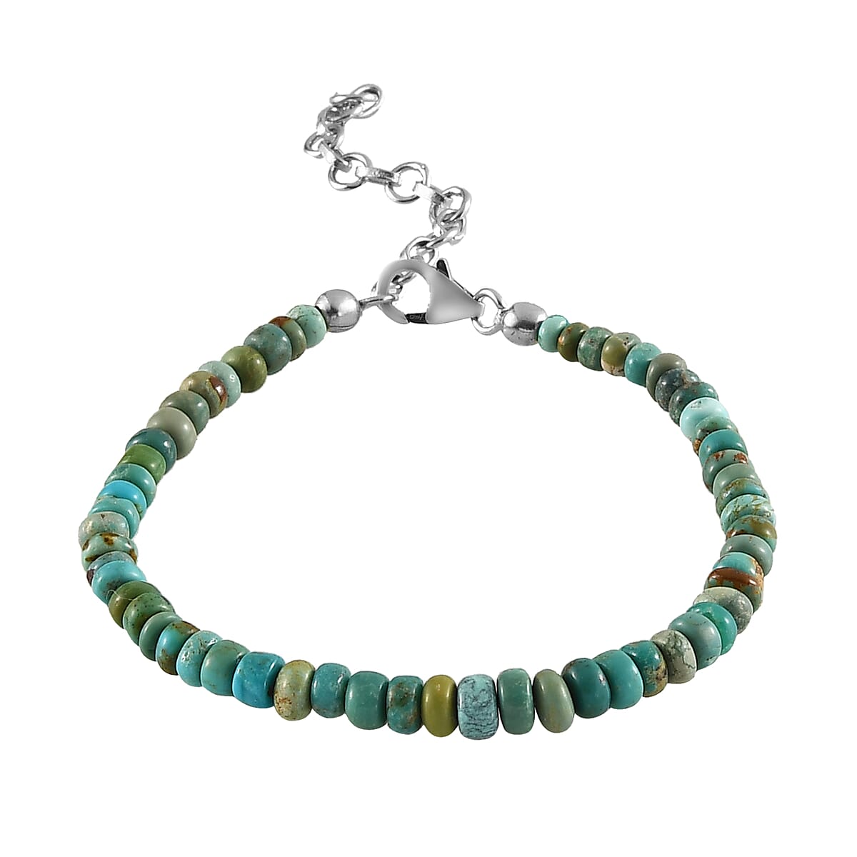 American South Hill Turquoise Beaded Bracelet in Rhodium Over Sterling Silver (7.25-9.25In) 25.00 ctw