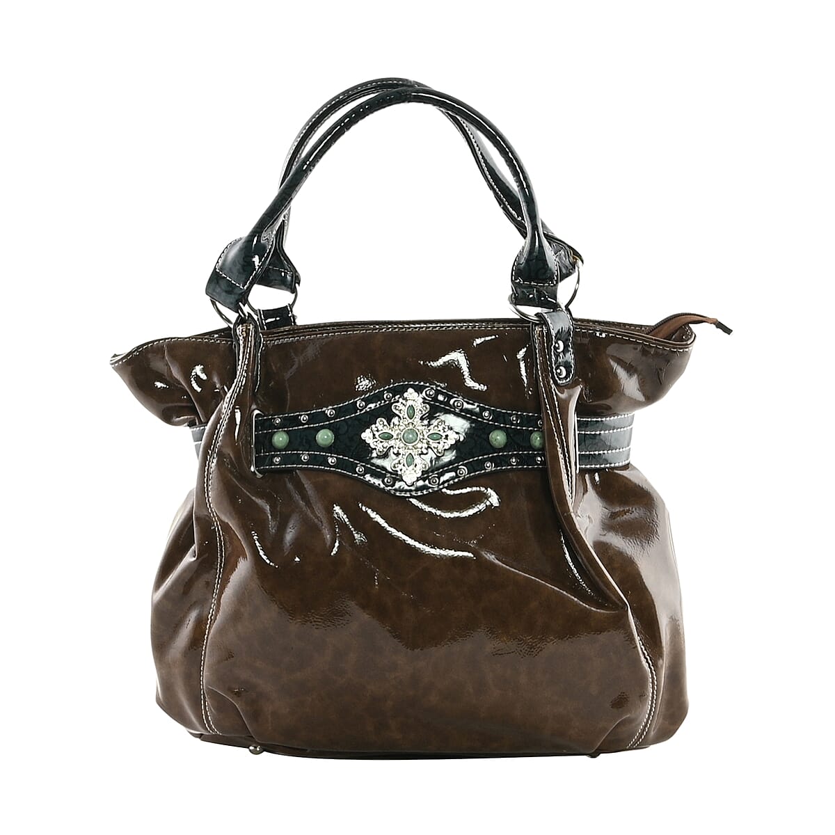American West Style Brown and Green Faux Leather, Cross Style Shoulder Bag