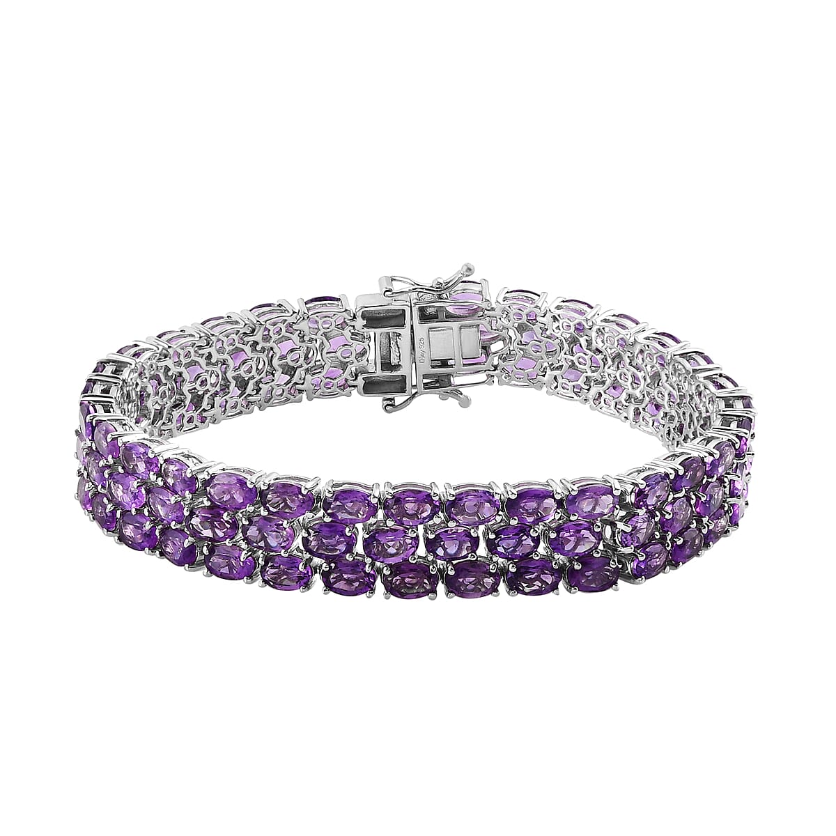 Amethyst 3 Row Tennis Bracelet in Platinum Over Sterling Silver (8.00 In) 36.00 ctw