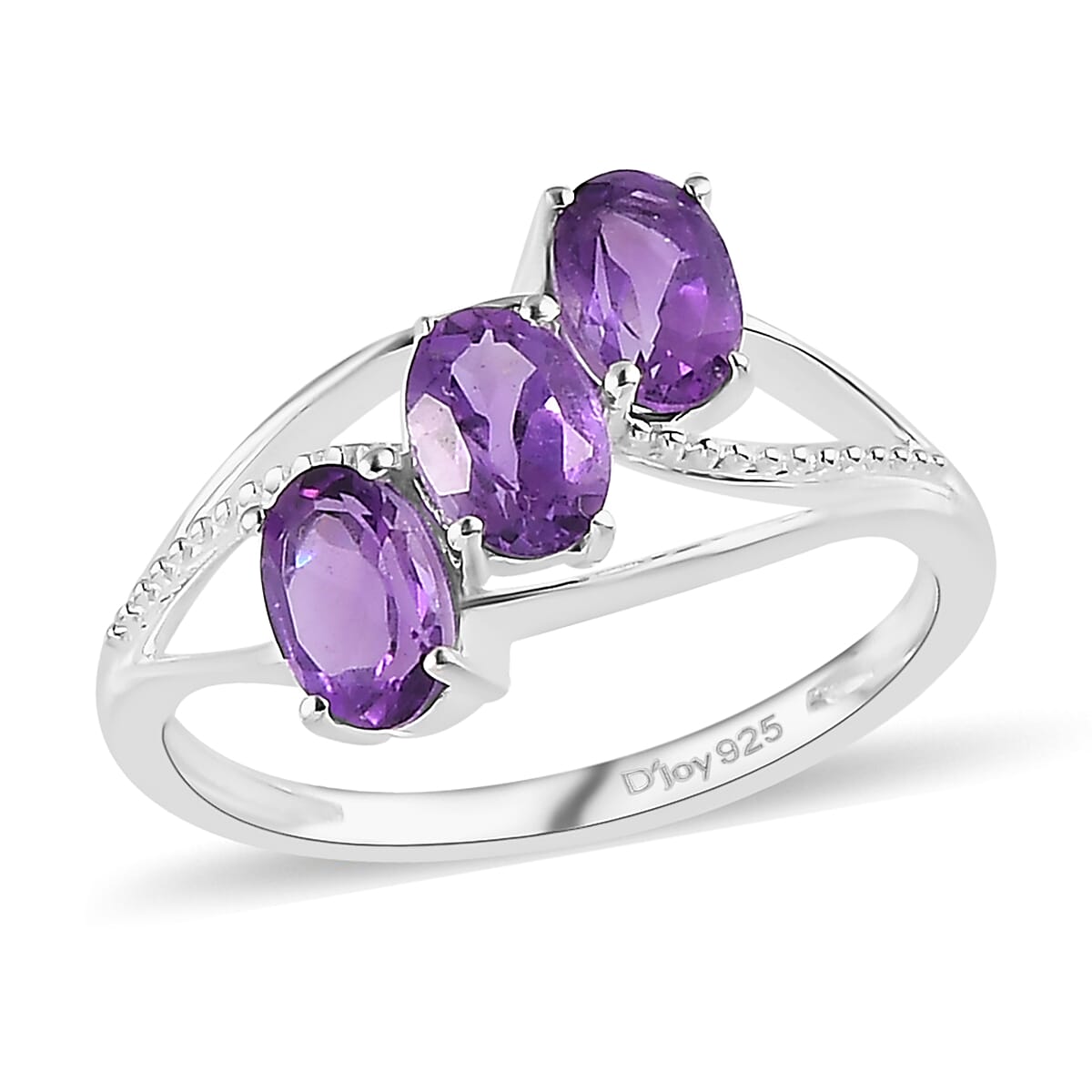 Amethyst 3 Stone Ring in Sterling Silver (Size 10.0) 1.25 ctw