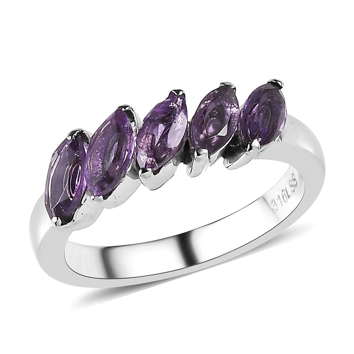 Amethyst 5 Stone Ring in Stainless Steel (Size 6.0) 1.25 ctw