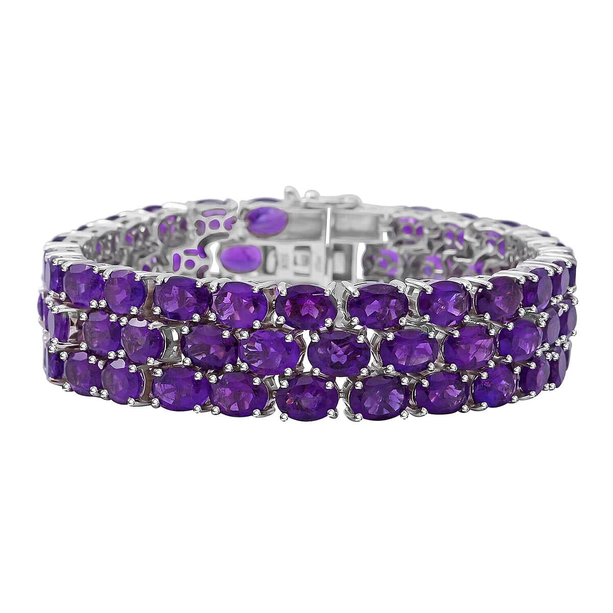 Amethyst 59.40 ctw Multi Row Tennis Bracelet For Women in Platinum Over Sterling Silver,Statement Jewelry For Wedding 8.00 Inches (8.00 In)