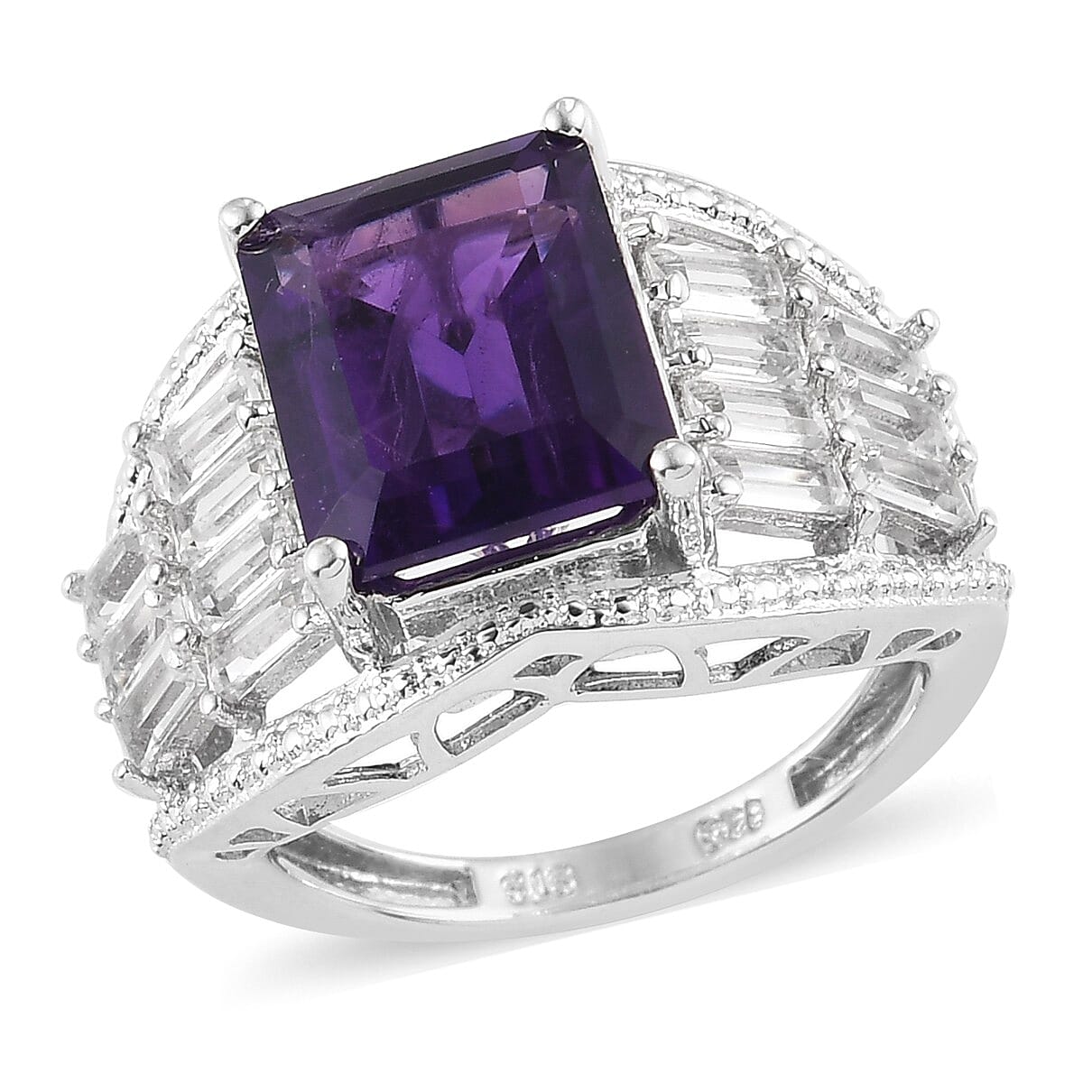 Amethyst and White Topaz Ring in Platinum Over Sterling Silver (Size 8.0) 8.20 ctw