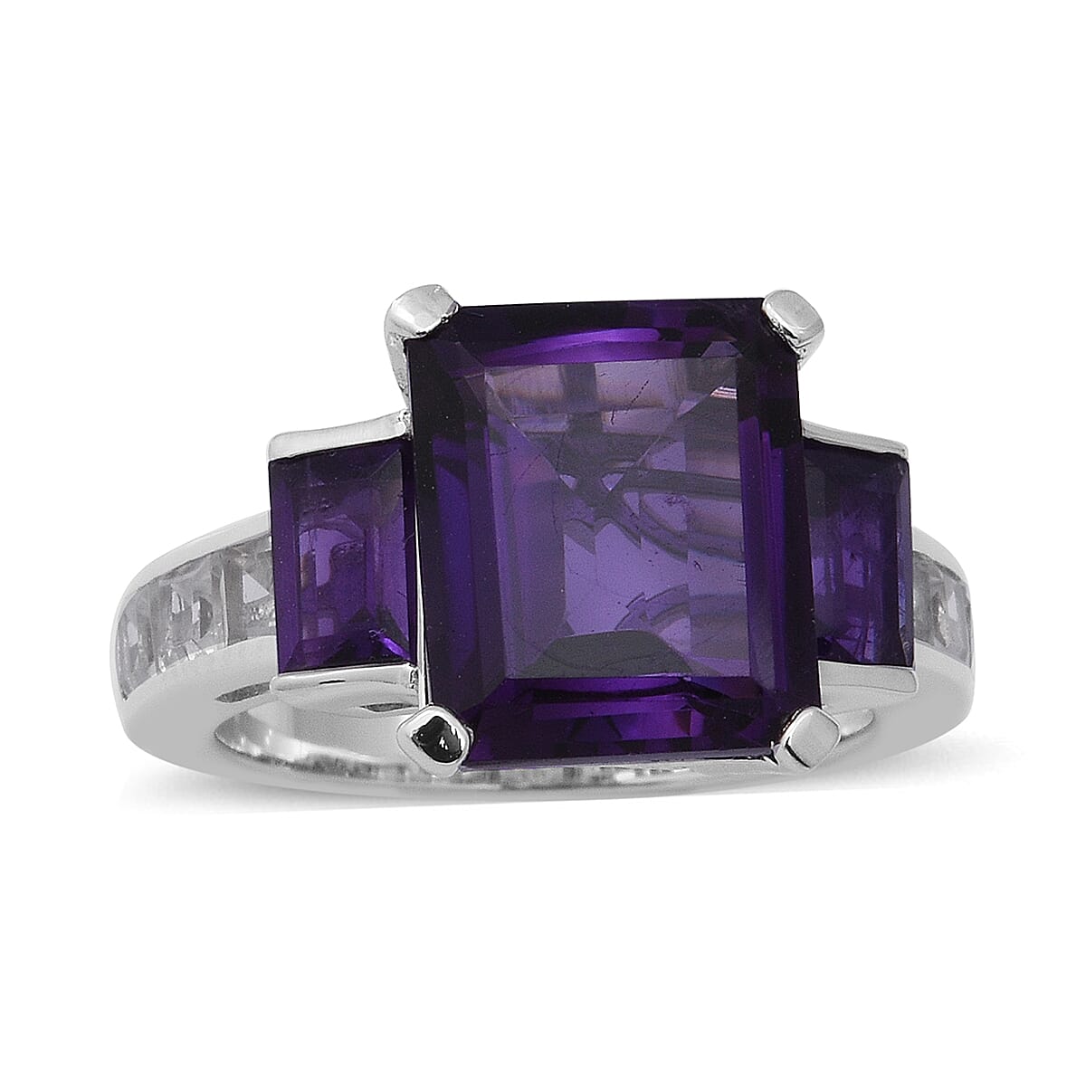 Amethyst and White Topaz Ring in Platinum Over Sterling Silver (Size 10.0) 8.85 ctw