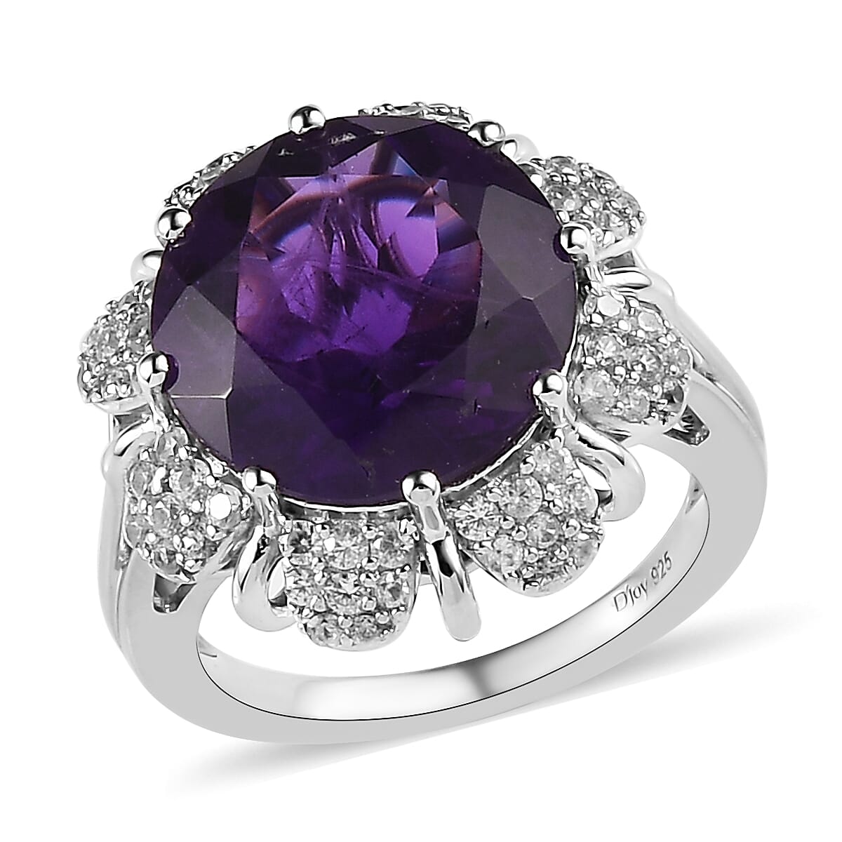 Amethyst and White Zircon Floral Ring in Platinum Over Sterling Silver (Size 8.0) 9.85 ctw