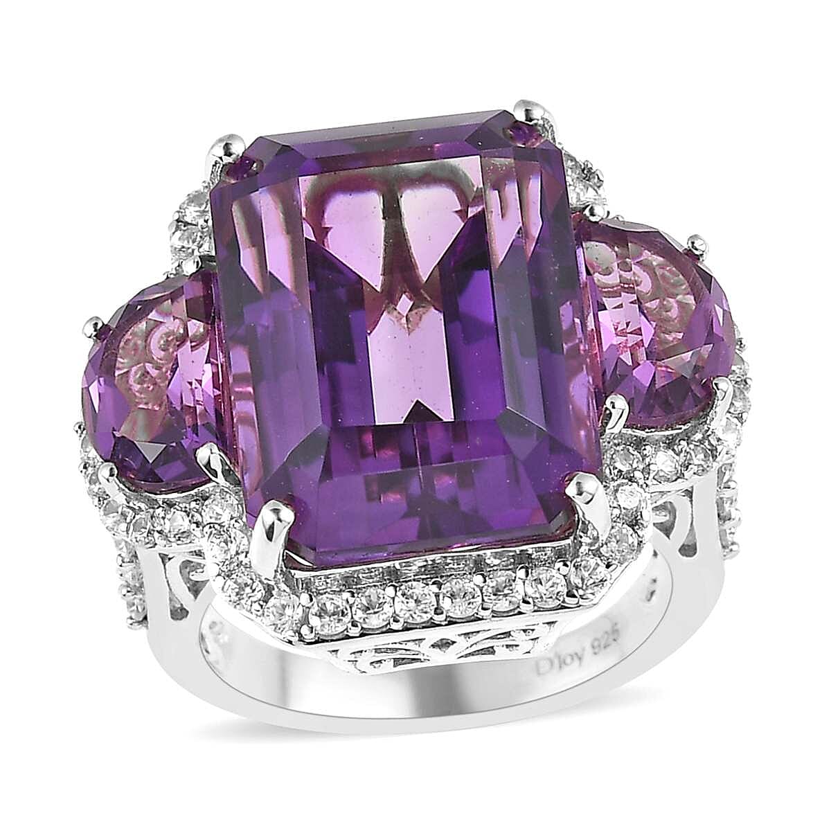 Amethyst and White Zircon Ring in Platinum Over Sterling Silver 19.70 ctw