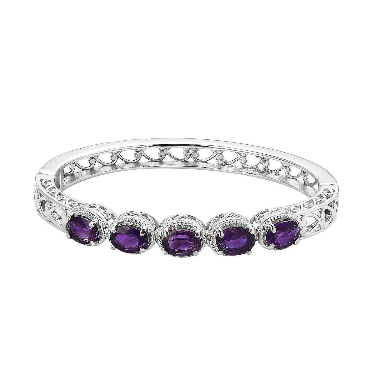 Amethyst Bangle Bracelet in Stainless Steel (6.50 In) 5.40 ctw | Tarnish-Free, Waterproof, Sweat Proof Jewelry