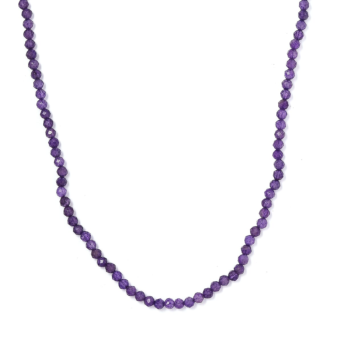 Amethyst Bead Necklace in Platinum Plated Sterling Silver, Beaded Jewelry For Women (18 Inches) 27.10 ctw