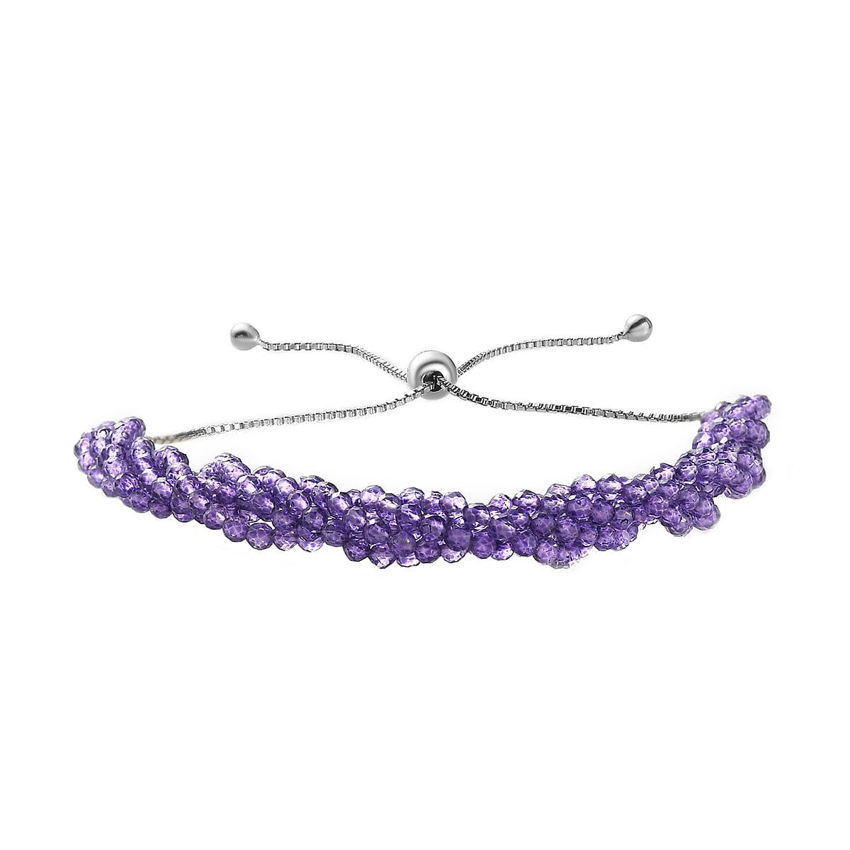 Amethyst Beaded Bracelet in Sterling Silver 25.25 ctw