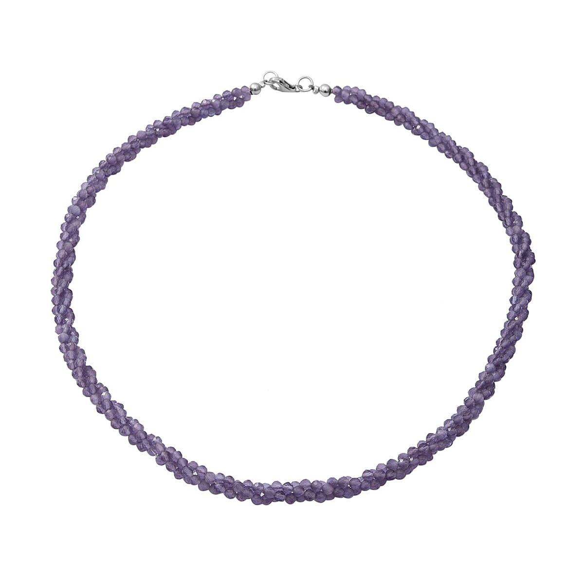 Embellish your neckline with the solemn beauty of this three-layer twisted amethyst beads necklace. The smooth and lustrous beads weaved in a durable twisted string complete the design of this 18 inches beads necklace. The smooth round-shaped beads are manually waved and braided for maximum durability and safety. This twisted bead jewelry is secured by a lobster clasp, easy and hassle-free to wear and remove. Amethyst is crystalline quartz in colors ranging from pale lilac to deep reddish-purple. With a relatively high hardness of 7, the February birthstone is a fine facetable jewelry gem for all purposes