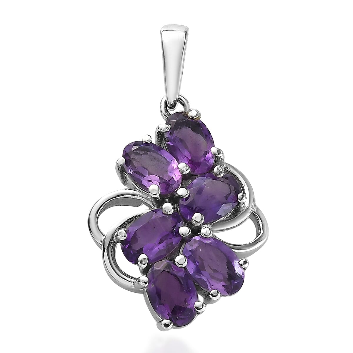 Amethyst Cluster Pendant iin Stainless Steel 2.65 ctw
